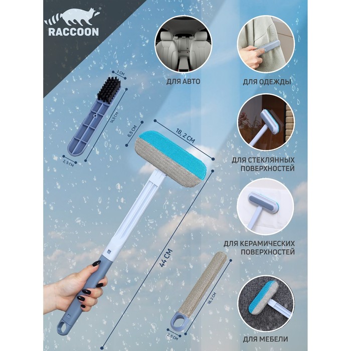 Многофункциональная окномойка Raccoon предназначена для мытья окон, москитных сеток, зеркальных и керамических поверхностей. Также с помощью данной щётки вы сможете без труда очистить от шерсти и волос одежду и мебель.