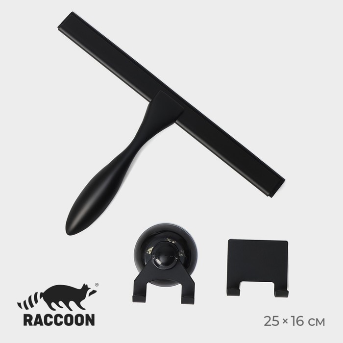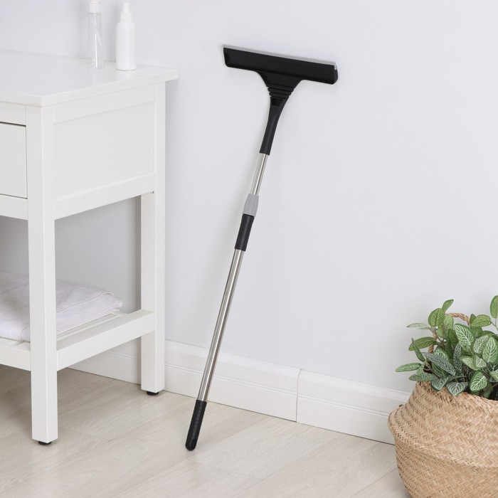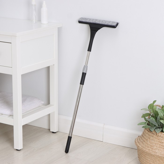 Окномойка с насадкой из микрофибры Raccoon, гибкая, стальная телескопическая ручка, 28×2.5×80(117) см, чёрная