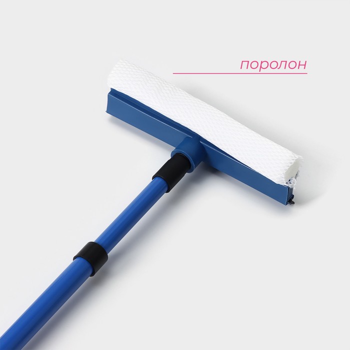 Окномойка с телескопической металлической окрашенной ручкой и сгоном Доляна, 20×49(75) см, поролон, цвет синий