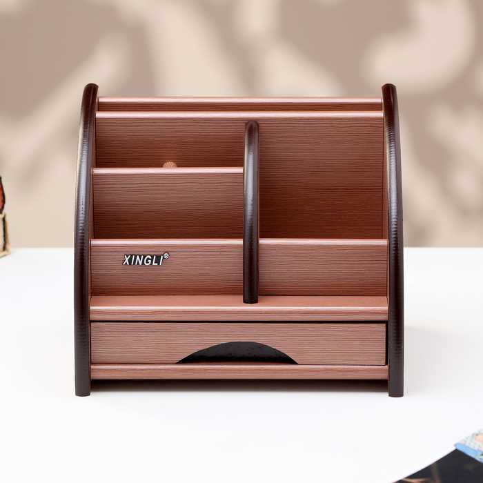 Настольный органайзер поможет поддерживать порядок в рабочей зоне, хранить канцелярские принадлежности или другие мелочи и не потерять их. Разместите в специально отведённых секциях не только ручки и карандаши, но также кнопки, скрепки и клейкую ленту. Теперь все эти маленькие, вечно теряющиеся предметы будут аккуратно сложены на своём месте.
