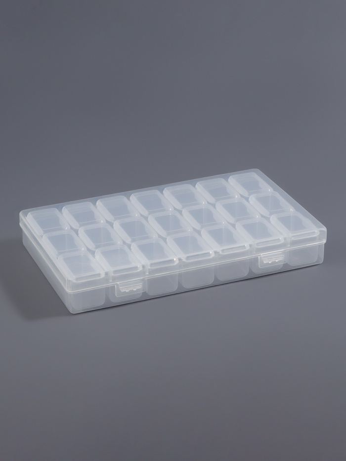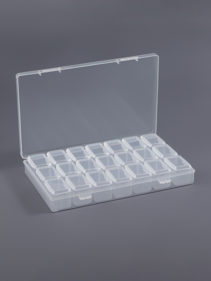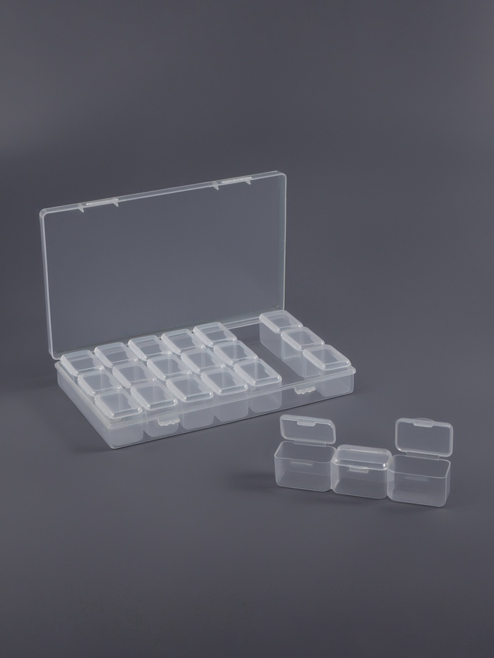 Набор контейнеров 7 блоков по 3 ячейки для хранения страз, бисера, маникюрных украшений, декора прочих мелочей. Позволит организовать аккуратное хранение по цветам, размерам и видам.