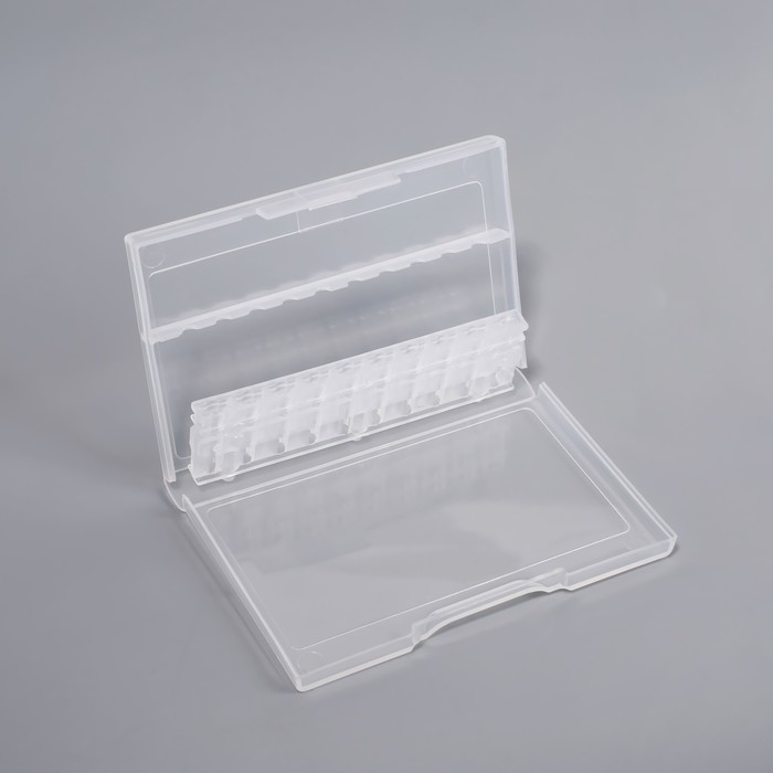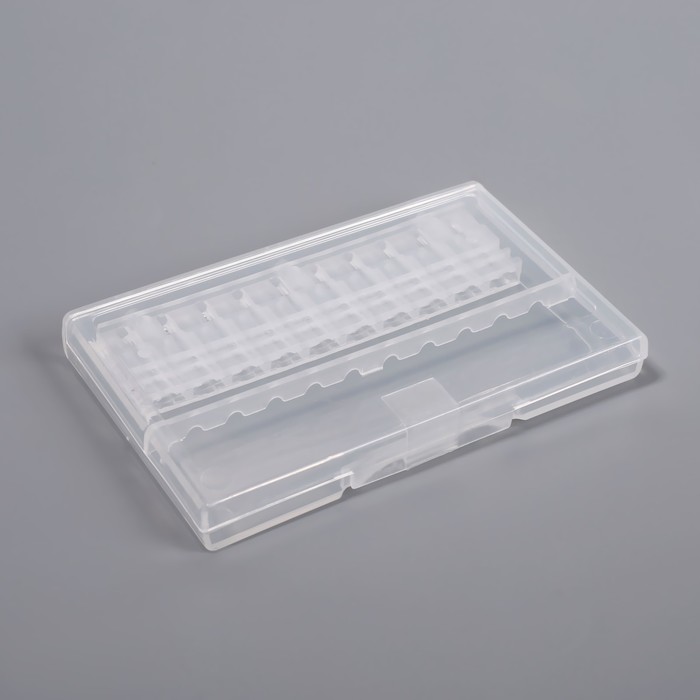 Органайзер изготовлен из пластика, вмещает в себя 10 фрез. Основание фрезы чётко помещается в разъём и надёжно фиксируется в нём. Органайзер поможет содержать рабочий инструмент в чистоте и порядке, и фрезы всегда будут под рукой.