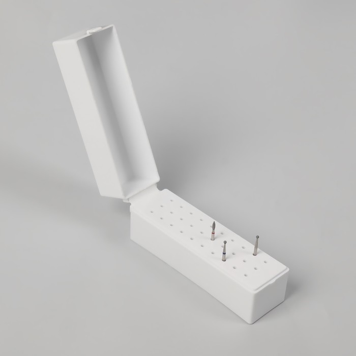 Органайзер изготовлен из пластика, вмещает в себя 30 фрез. Основание фрезы чётко помещается в разъём и надёжно фиксируется в нём. Органайзер поможет содержать рабочий инструмент в чистоте и порядке, и фрезы всегда будут под рукой.