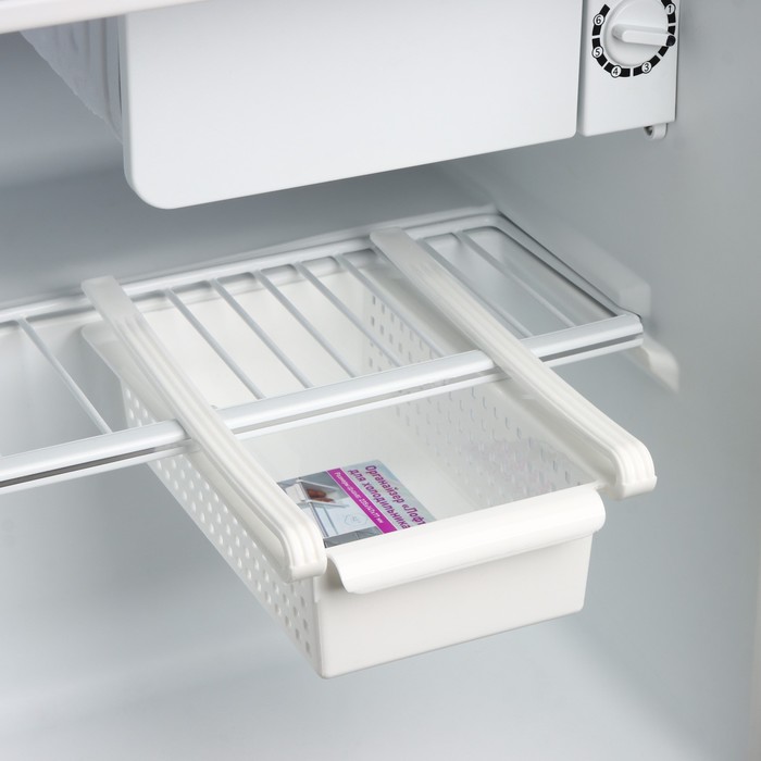 Небольшой подвесной пластиковый контейнер - органайзер способен значительно cэкономить место в Вашем холодильнике! В него можно положить яйца, чеснок, масло, сырки, ягоды и другие небольшие продукты, за счет чего место в холодильнике на полке или в дверце значительно освободится. Также, подвесной пластиковый органайзер можно прикрепить к письменному столу и положить туда ручки, калькулятор, блокноты и т.п. , чтобы освободить рабочее пространство.