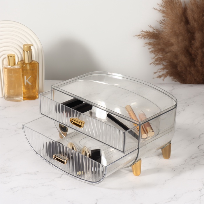 Этот органайзер не только функционален, но и эстетично выглядит. Он легко впишется в любой интерьер и поможет быстро найти нужные вещи. Благодаря прозрачному материалу вы сможете видеть содержимое органайзера, не открывая его. А золотистые элементы добавят изысканности и элегантности в вашу систему хранения. Не упустите возможность приобрести этот замечательный органайзер! Он станет незаменимым аксессуаром для вашего дома или офиса.