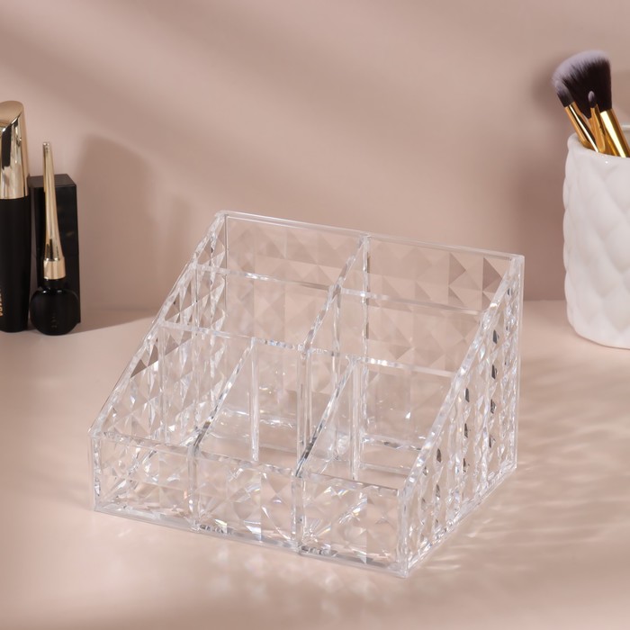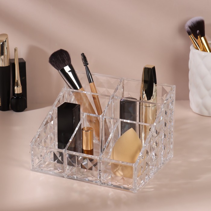 Органайзер предназначен для практичного хранения косметических и маникюрных принадлежностей, хозяйственных мелочей и аксессуаров. С удобством в нём разместятся кисти, инструменты, средства в тюбиках и небольших флаконах, расходные материалы, бижутерия и многое другое. Использование подставки обеспечит порядок на столе и компактное размещение всего необходимого в одном месте.