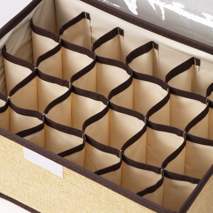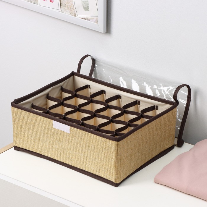 Органайзер для хранения белья с прозрачной крышкой Доляна «Тео», 24 отделений, 32×23×12 см, цвет бежево-коричневый