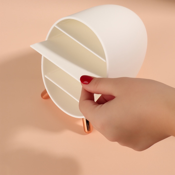 Органайзер выполнен из качественных материалов, которые обеспечивают его долговечность и надёжность использования. Белый цвет с розовым золотым акцентом придаёт ему элегантный и современный вид, который гармонично впишется в любой интерьер.