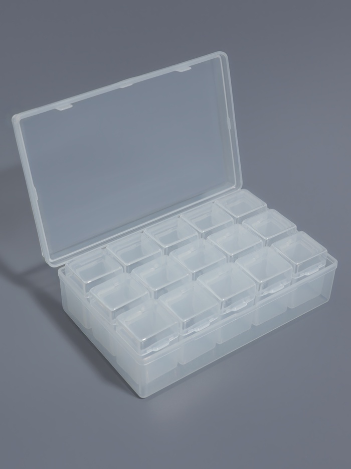 Набор из 15 прозрачных баночек в контейнере от Арт Узор — практичное решение для хранения мелких предметов. Компактные размеры 13.5×8.5×3.8 см позволяют удобно разместить органайзер на рабочем столе, в шкафу или чемодане для рукоделия.