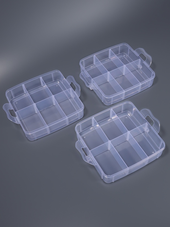 Прозрачный многоуровневый органайзер QF с 18 ячейками и удобной ручкой — идеальное решение для хранения и переноски мелких предметов. Его габариты 15×16×12,5 см обеспечивают компактность при значительной вместимости.
