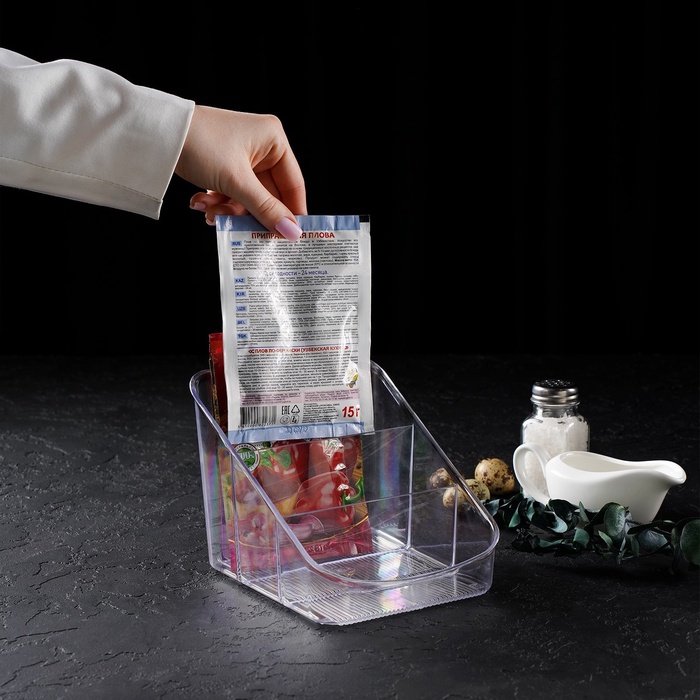 Каждая хорошая хозяйка имеет в запасе пару–тройку хитростей, которые делают ее блюда неповторимыми. В большинстве своем такой хитростью является оригинальное сочетание приправ. Хотите обзавестись своими кулинарными секретами и поражать всех удивительным вкусом блюд? Предлагаем вашему вниманию удобный, прочный органайзер для специй. Благодаря специальной форме вы можете устойчиво разместить все пакетики с приправами, независимо от их размеров. Конструкция позволяет разглядеть все содержимое органайзера разом, что значительно облегчит процесс поиска нужной специи.