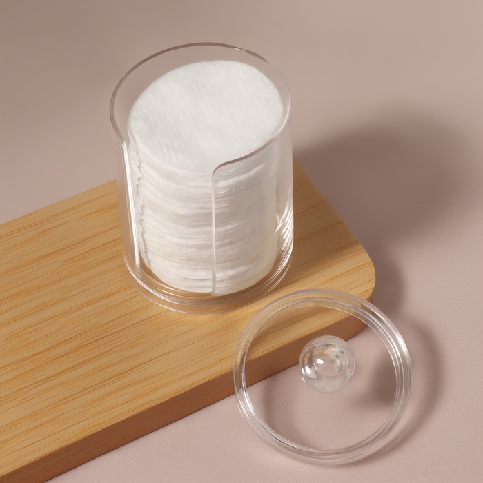Стильный органайзер для ватных дисков поможет навести порядок среди гигиенических принадлежностей. Изделие отличается удобной боковой прорезью для извлечения дисков. Аксессуар способен вписаться в любой интерьер, сэкономив при этом место в шкафчиках или на вашей тумбочке.