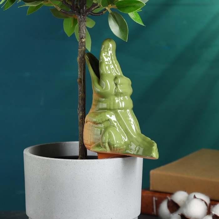 Ороситель "Крокодил" для комнатных и садовых растений Кунгурская керамика, 0.2л, 19см, зелёный 77706