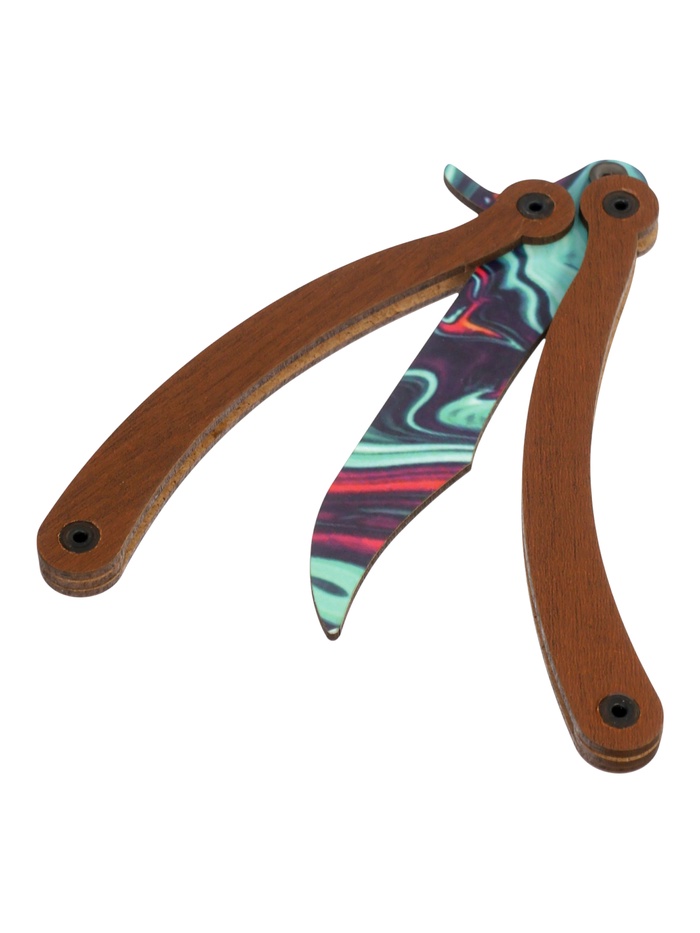 Складной нож «Бабочка» от торговой марки «ПАПАСДЕЛАЛ» — это безопасная и увлекательная игрушка для детей от 3 лет. Изготовленный из дерева, у него небольшой вес, что делает его лёгким и удобным для маленьких рук.
