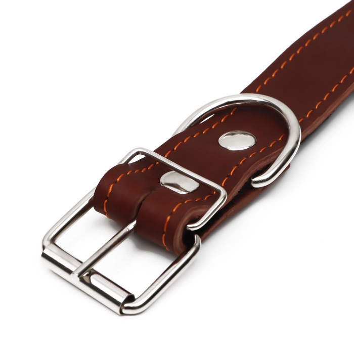 Кожаный ошейник - незаменимый аксессуар для владельцев собак всех пород и возрастов. Изделие выполнено из мягкой, но прочной кожи высокого качества с элементами из синтепона и использованием крепкой металлической фурнитуры. Предусмотренные отверстия позволяют удобно подгонять длину под индивидуальные параметры животного, а функциональное металлическое кольцо отлично подойдет для крепления карабина поводка, адресника или других аксессуаров