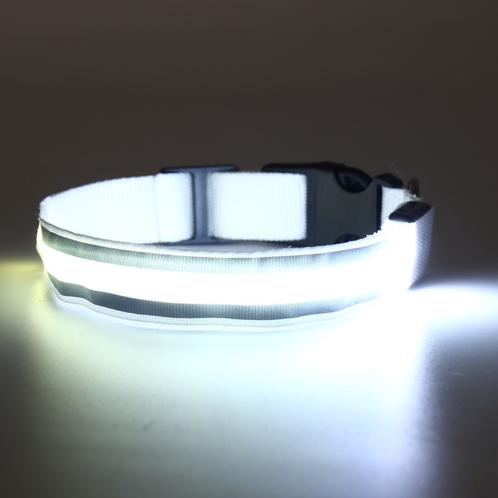 Ошейник с подсветкой "Двойная полоса", 3 режима свечения, белый