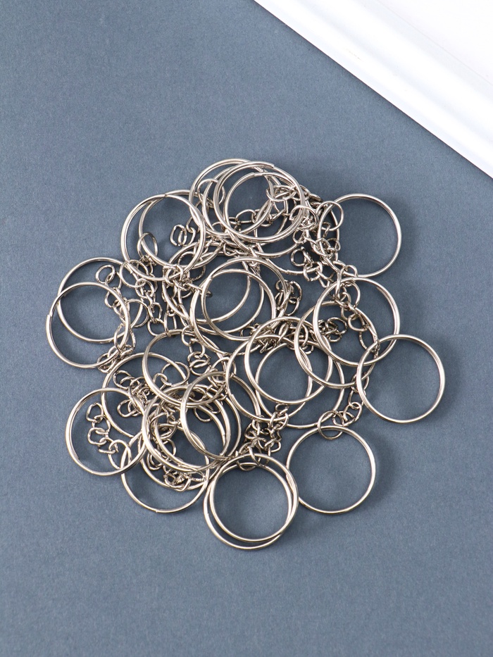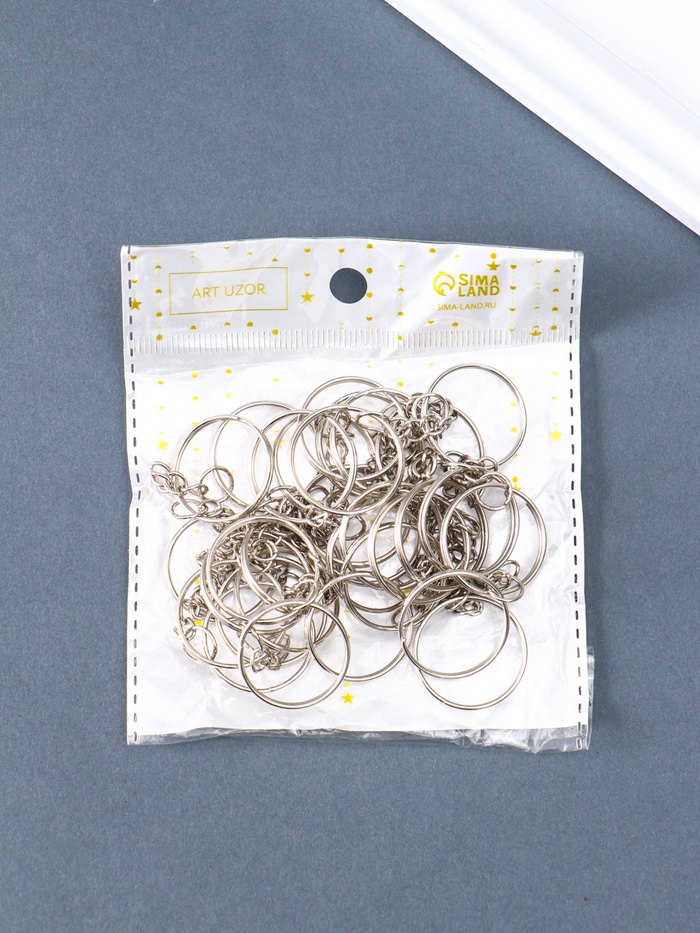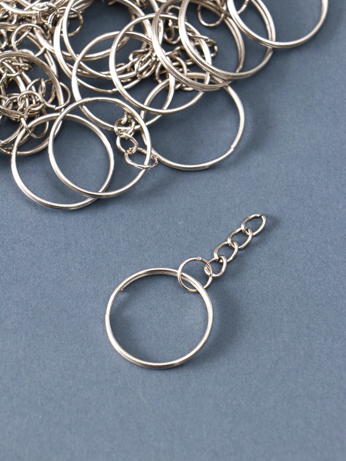 Основа для брелока кольцо металл с цепочкой серебро набор 50 шт 2,4х2,4 см
