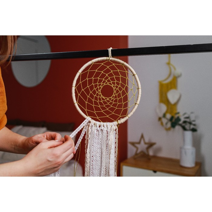 Кольцо становится основой для настенных панно, абажуров или оригинальных мобилей. В бижутерии его применяют как базу для кулонов или декоративный элемент в браслетах. Благодаря нейтральному цвету гармонирует с любыми типами нитей — от хлопка до тонкого шнура.