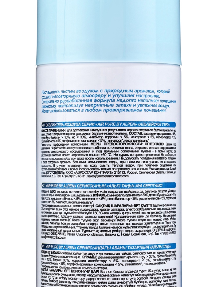 Освежитель воздуха в аэрозольной упаковке серии Air pure by Alpen альпийское утро, 300 мл