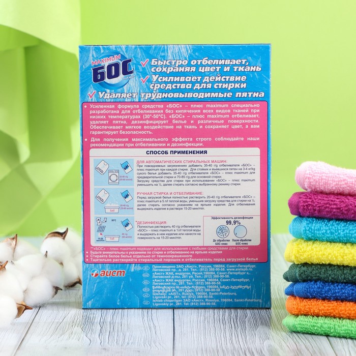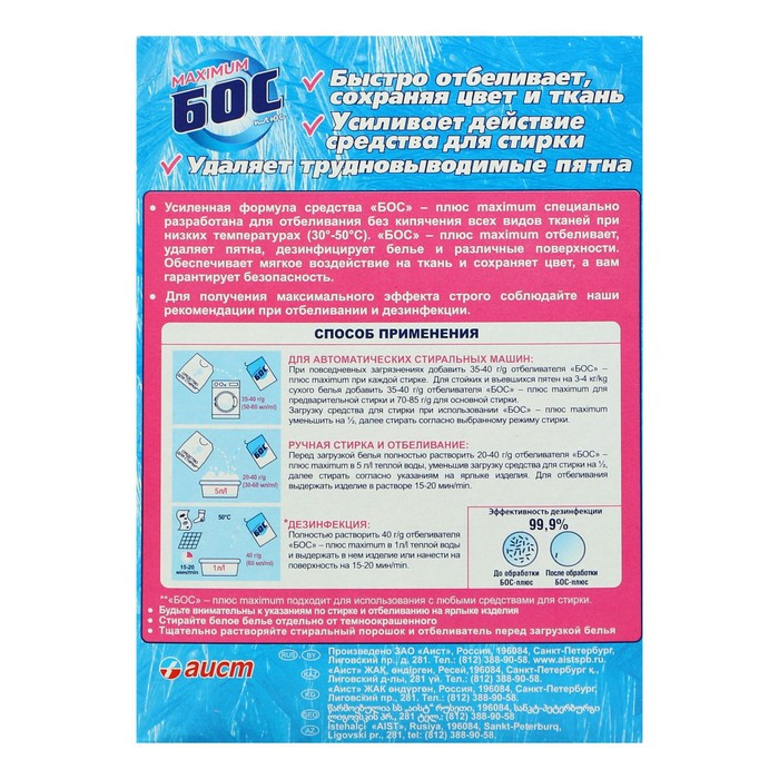 Кислородосодержащий отбеливатель «БОС плюс Maximum» подходит для стирки всех видов тканей.