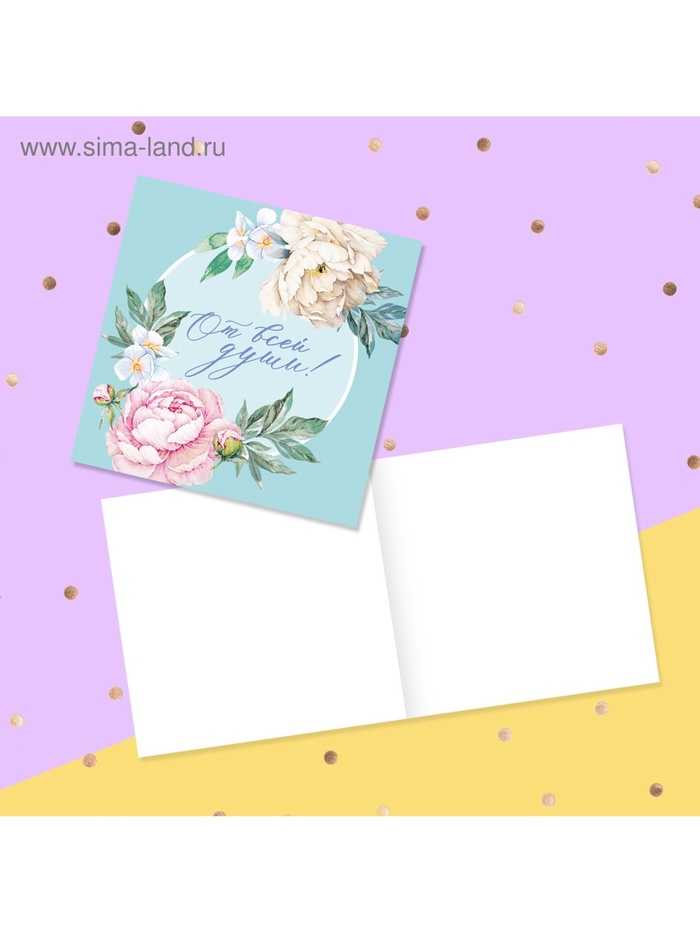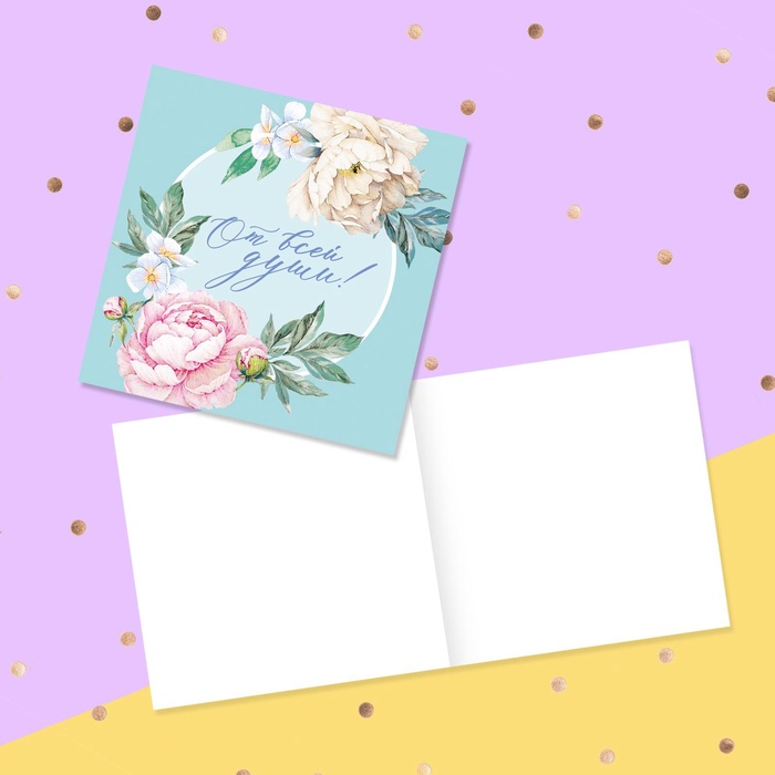 Открытка‒мини «От всей души», цветочная композиция, 7 × 7 см