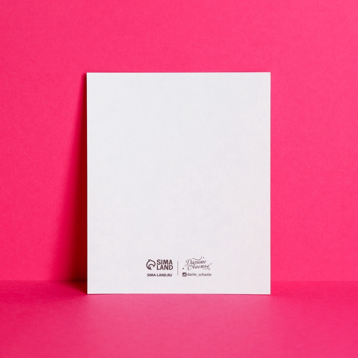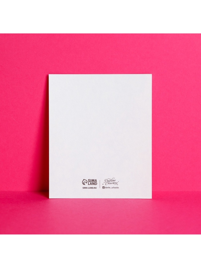 Открытка одинарная, на обороте снизу инфоблок (ШК, производитель), остальное поле белое.