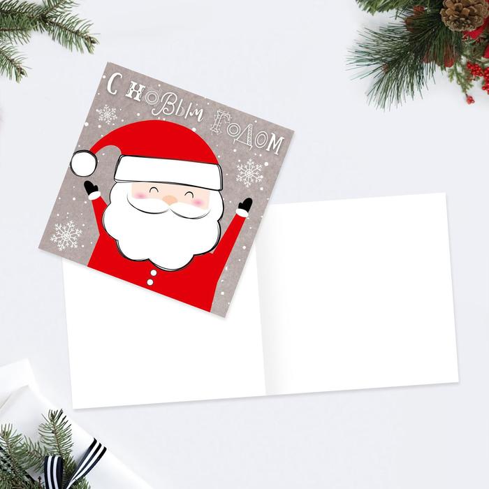 Открытка-мини с новым годом «С Новым годом!» санта, 7 х 7 см