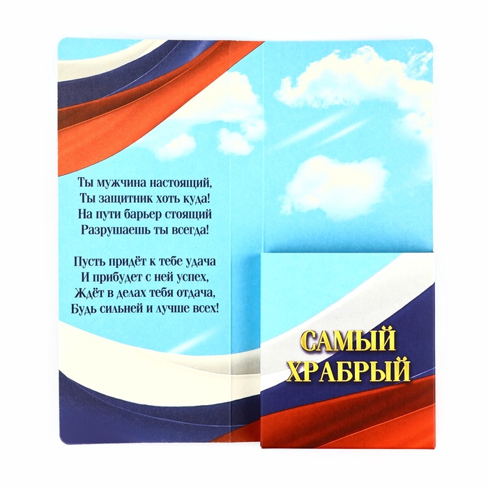 Открытка с местом под шоколадку, станет прекрасным подарком к празднику. Яркий дизайн, удобный формат и приятные эмоции обеспечены своему получателю.