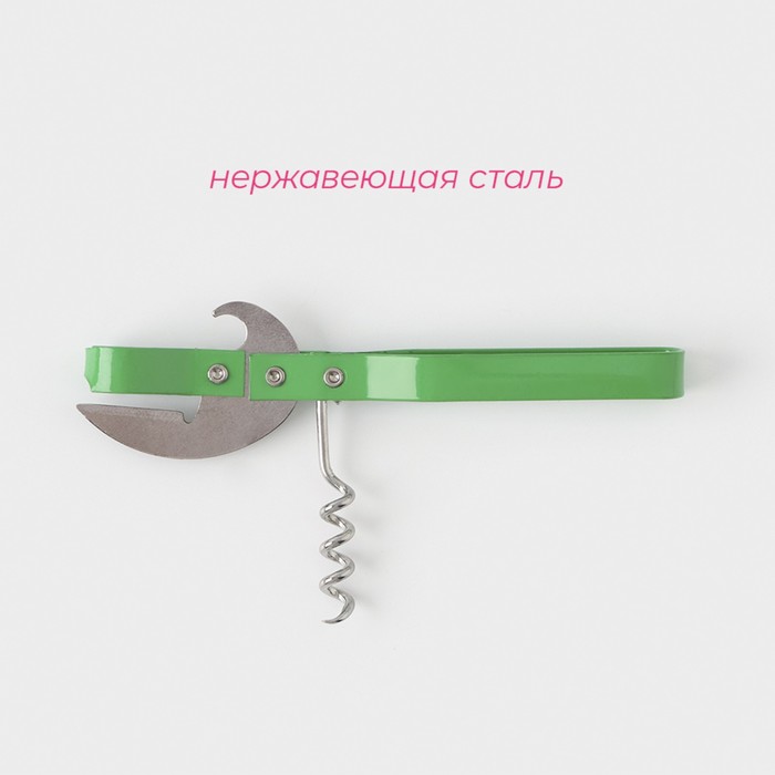 Открывашка-штопор “Помощник” — это незаменимый инструмент на любой кухне. Он поможет вам легко и быстро открыть банки и бутылки с вином.