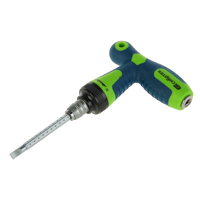 Биты изготовлены из хромованадиевой стали. Это обеспечивает их прочность и стойкость к износу. Трещоточный механизм с функцией реверса облегчает работу и позволяет менять направление вращения крепежа.