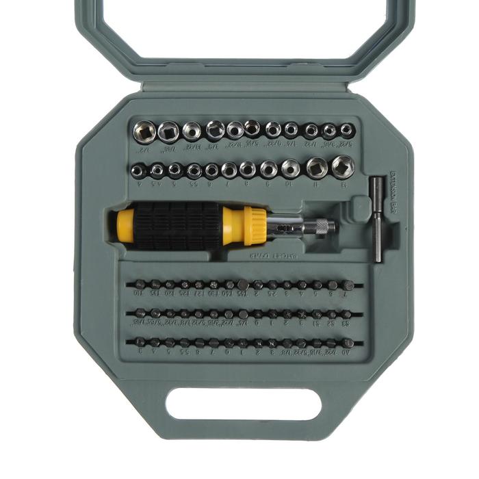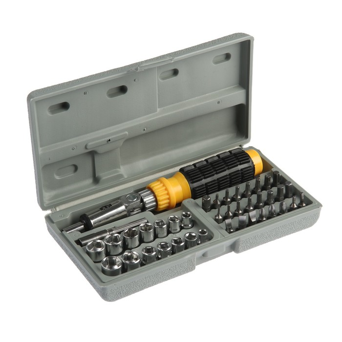 - биты, 32 шт.: PH0-1-2-3, PZ0-1-2-3, SL3-4-5-5.5-6-7, H2-2.5-3-4-5-6-7, T10-15-20-25-27-30-40-45, S1-2-3