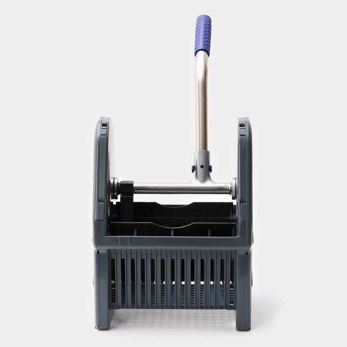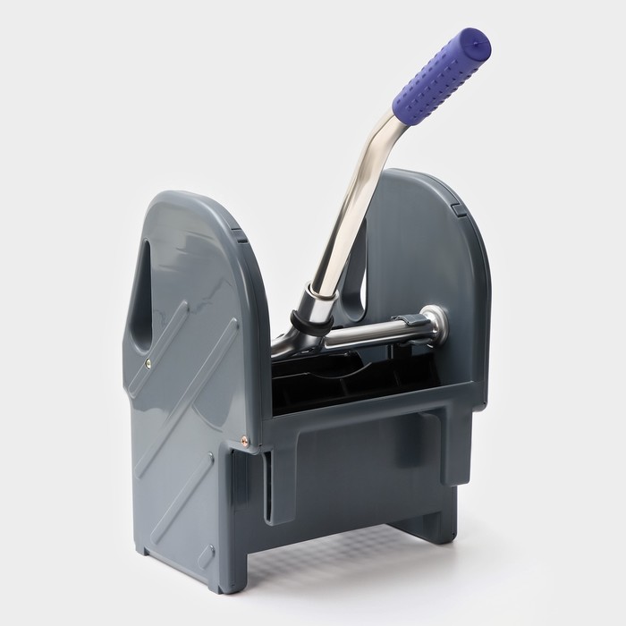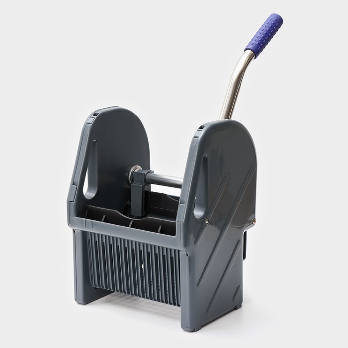 Механический отжим быстро устанавливается на уборочную тележку или ведро и при необходимости просто демонтируется. При этом сами компоненты разборные и легко заменяются. В комплект также входит скоба-крепление для фиксирования рукоятки уборочного инвентаря. Он крепится непосредственно к корпусу отжима. С помощью данной функции вы сможете надёжно зафиксировать швабру в ведре тележки.