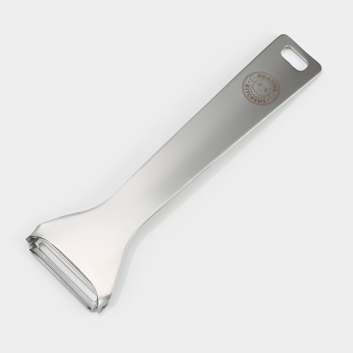 При использовании овощечистки двигайте нож по направлению от плода, держа его под углом примерно 20 градусов. Позвольте лезвию зацепиться за кожуру, не нужно давить на плод. Позволяет чистить лук без слез - при чистке лука всегда начинайте от корешка и двигайте нож вниз.
