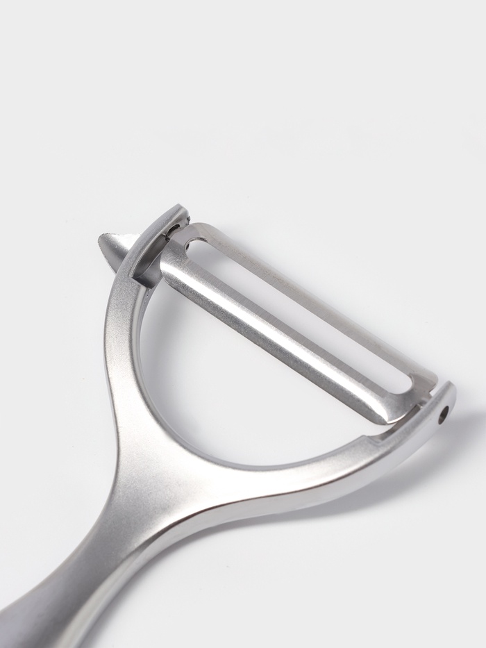 - Острое лезвие из нержавеющей стали: Обеспечивает легкое и быстрое снятие кожуры, не повреждая мякоть овощей.