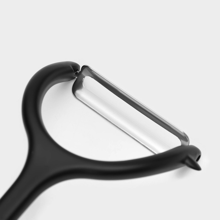 При использовании овощечистки двигайте нож по направлению от плода, держа его под углом примерно 20 градусов. Позвольте лезвию зацепиться за кожуру, не нужно давить на плод. Позволяет чистить лук без слез - при чистке лука всегда начинайте от корешка и двигайте нож вниз.