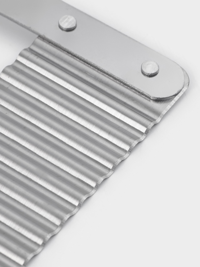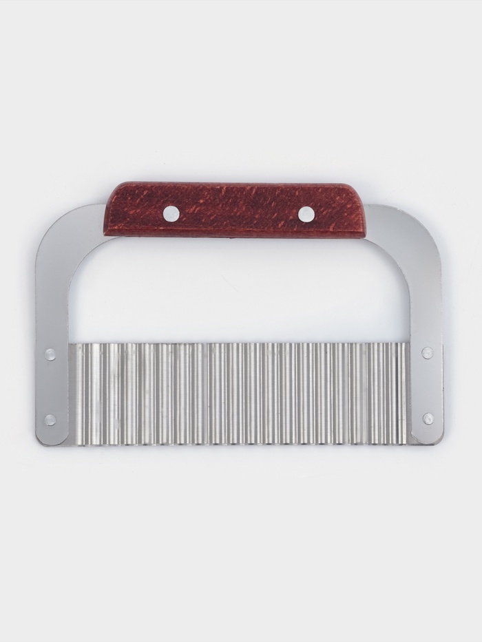 Ножи для декоративной нарезки овощей и фруктов сегодня пользуются популярностью. Изделие имеет характерное лезвие с выпуклыми зубцами по всему прямому полотну. При нарезании продуктов он придаёт поверхности ломтиков красивую волнистую форму.