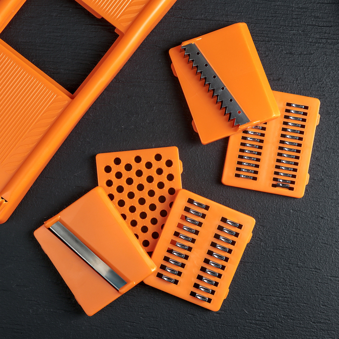 Набор для резки овощей – это компактное и многофункциональное приспособление для приготовления пищи, которое станет незаменимым помощником на любой кухне. Комплект включает в себя 5 видов насадок: ножи для шинковки капусты, для салатов, для корейской моркови двух видов и для пюре.