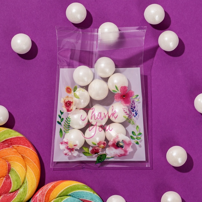 Яркая упаковка со словами благодарности! Набор подарочных пакетов «Спасибо» с клеевым клапаном, 7×7+3 см (100 шт.) — удобное решение для упаковки небольших подарков и сладостей. Прозрачные пакеты с красочными надписями создают праздничное настроение и подходят для любых мероприятий.