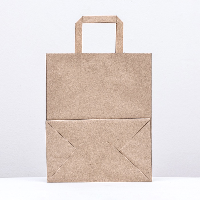 Пакет бумажный крафт, плоская ручка 24×14×29 см, 90 г/м²