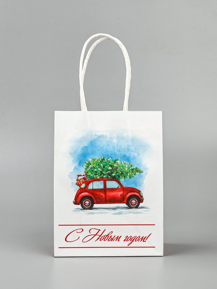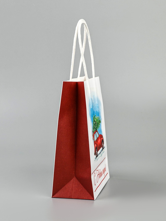 - Новогодний подарочный пакет с ярким, красочным рисунком создаст праздничное настроение.