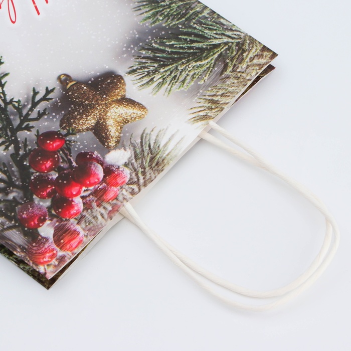 Пакет бумажный подарочный новогодний крафт "Новогоднее украшение" 18 х 8 х 25 см.