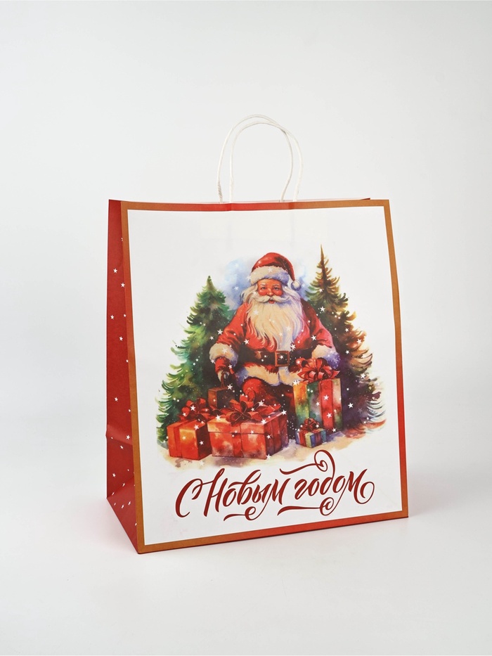 • Новогодний подарочный пакет с ярким, красочным рисунком создаст праздничное настроение.