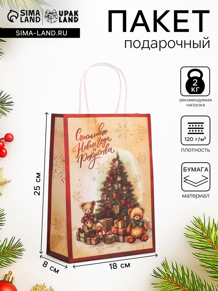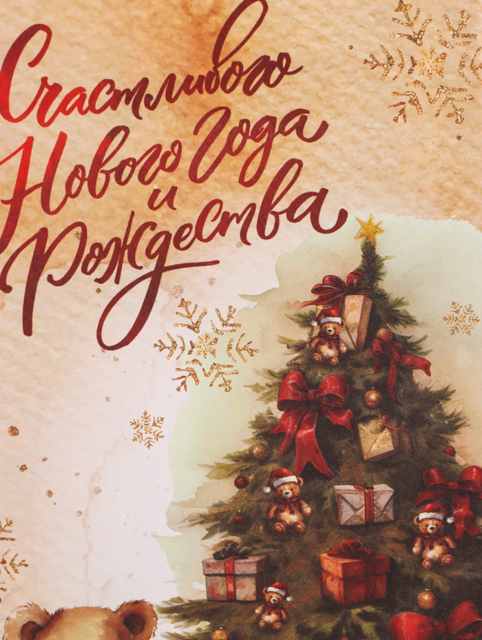 - Новогодний дизайн пакета придает ему праздничный вид и создает атмосферу праздника.
