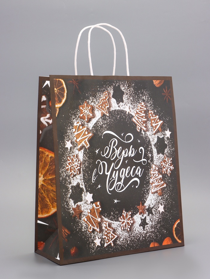 - Новогодний дизайн пакета придает ему праздничный вид и создает атмосферу праздника.
