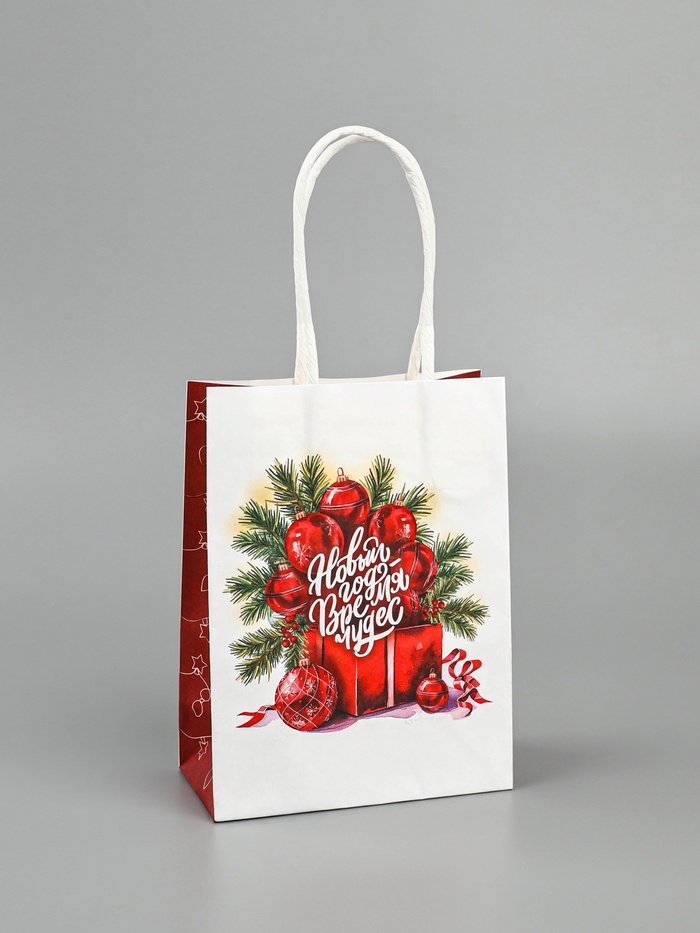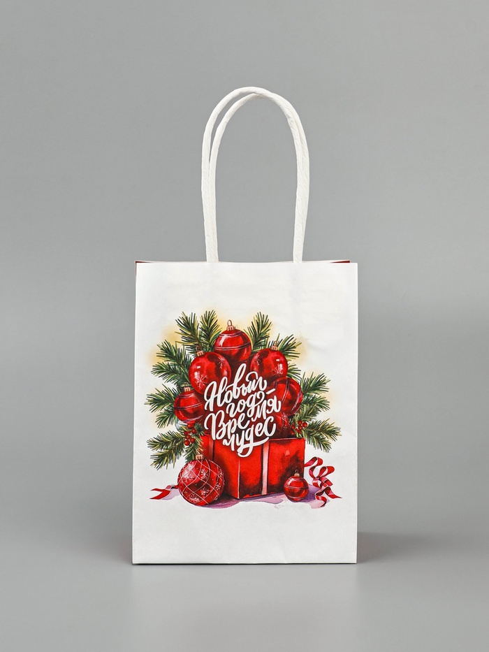 - Новогодний дизайн пакета придает ему праздничный вид и создает атмосферу праздника.