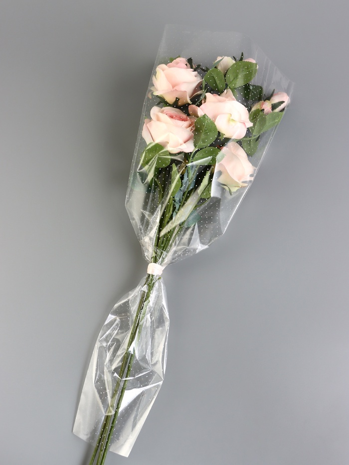 Яркий акцент для весенних букетов! Прозрачный конус с горошком 30×60 см — стильная упаковка для праздничных цветов. Веселый рисунок создает настроение, а прозрачная основа подчеркивает красоту бутонов.