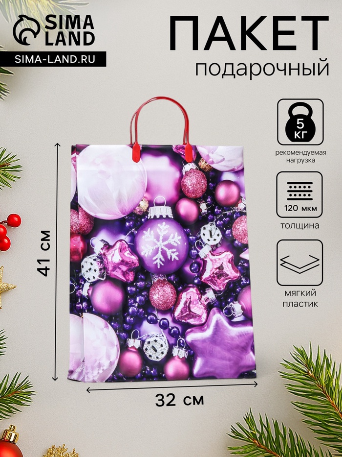 Пакет «Ёлочные игрушки», мягкий пластик, 41×32 см