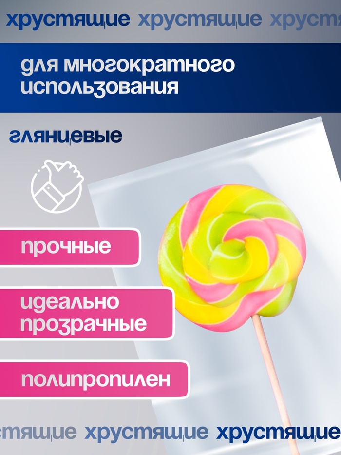 Биаксиально-ориентированные полипропиленовые пакеты. Для них характерна прочность на растяжение, устойчивость к разрывам, проколам. Высокая прозрачность позволяет разглядеть товар, не вскрывая упаковки. Глянцевый материал привлекает внимание покупателей.