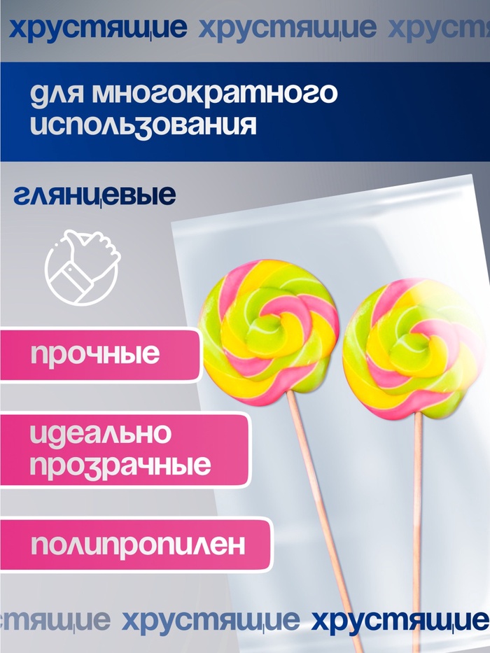 Биаксиально-ориентированные полипропиленовые пакеты. Для них характерна прочность на растяжение, устойчивость к разрывам, проколам. Высокая прозрачность позволяет разглядеть товар, не вскрывая упаковки. Глянцевый материал привлекает внимание покупателей.