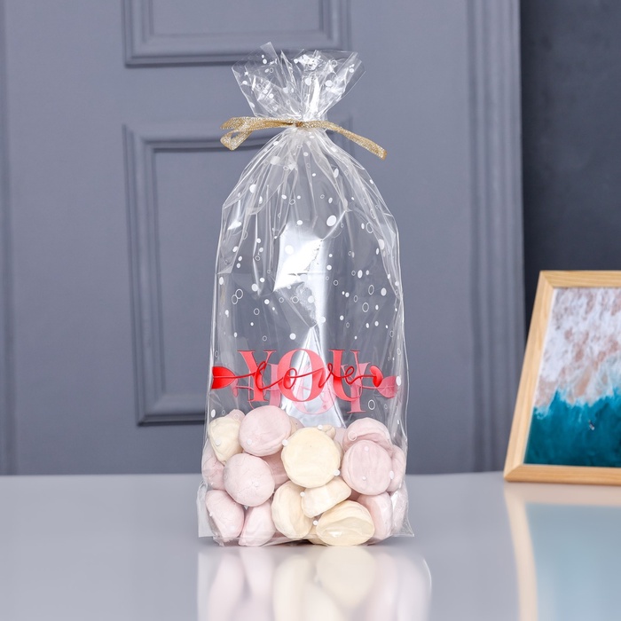 Пакет фасовочный БОПП, с донной складкой, "Я люблю тебя" 20*35 см набор 50 шт